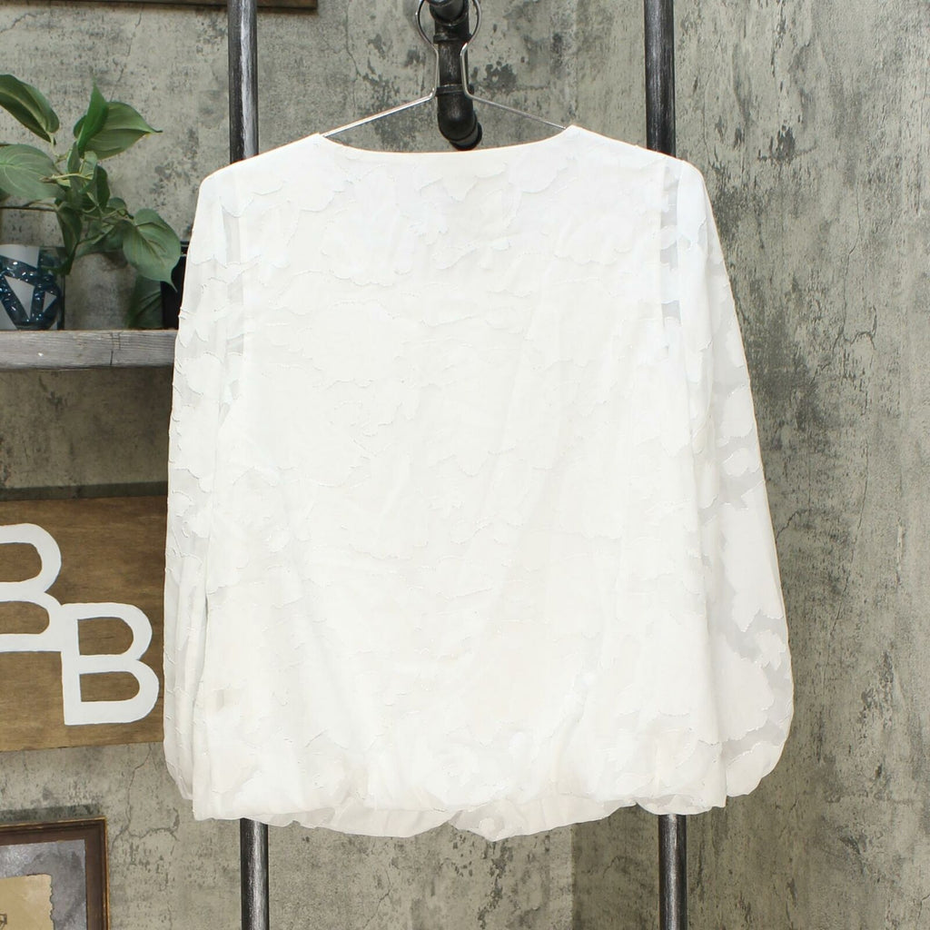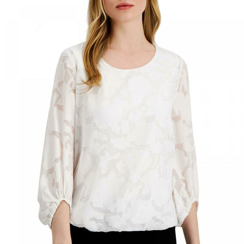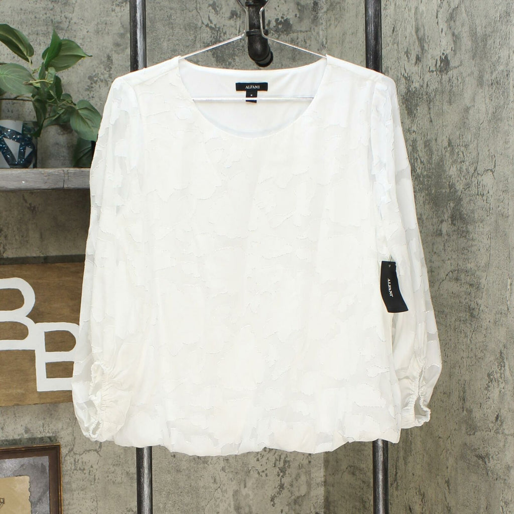 Alfani's beautifully textured top is updated with a playful bubble-style hem and 3/4-sleeves.
