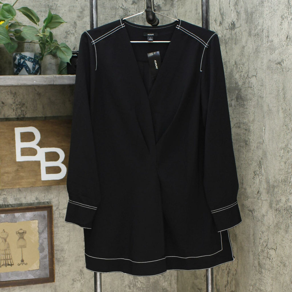 Contrast stitching outlines this sleek tunic from Alfani, a long-sleeve pick designed with a classic V-neck.