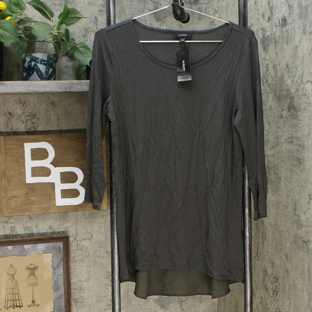 A graceful scoop neckline adds endless charm to the flowing silhouette of this Alfani top, designed with a woven back that falls beautifully.