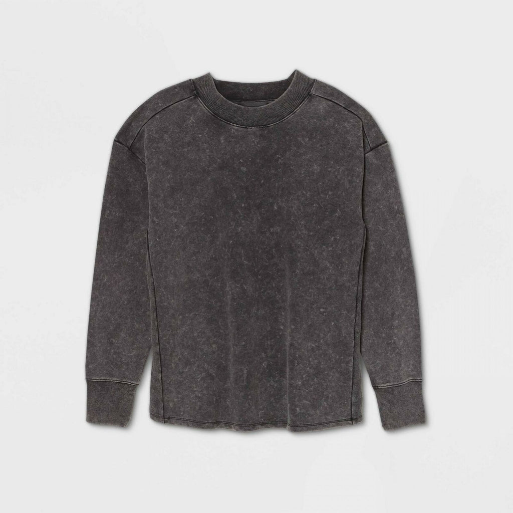 A crewneck sweatshirt makes for a comfy staple in your athleisure wardrobe. Soft, breathable fabric offers a gentle feel against your skin, coupled with a loose fit for total comfort. Cuffed sleeves and the crew neckline feature rib-knit detail for a bit of structure, complementing the rib-knit panels on either side of the sweatshirt for added texture and style. Drop shoulders further contribute to the relaxed design, perfect for transitional wear and laid-back agendas.