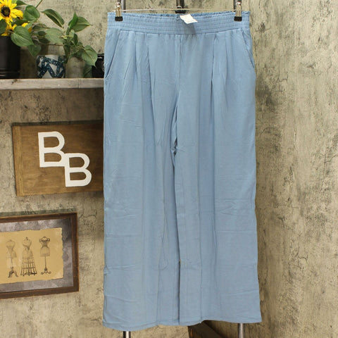 Features: smocked full elastic waistband, two side-seam pockets, inverted pleat detailing
