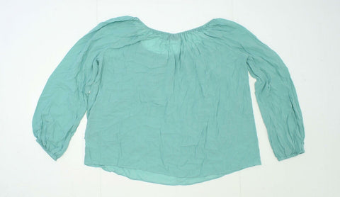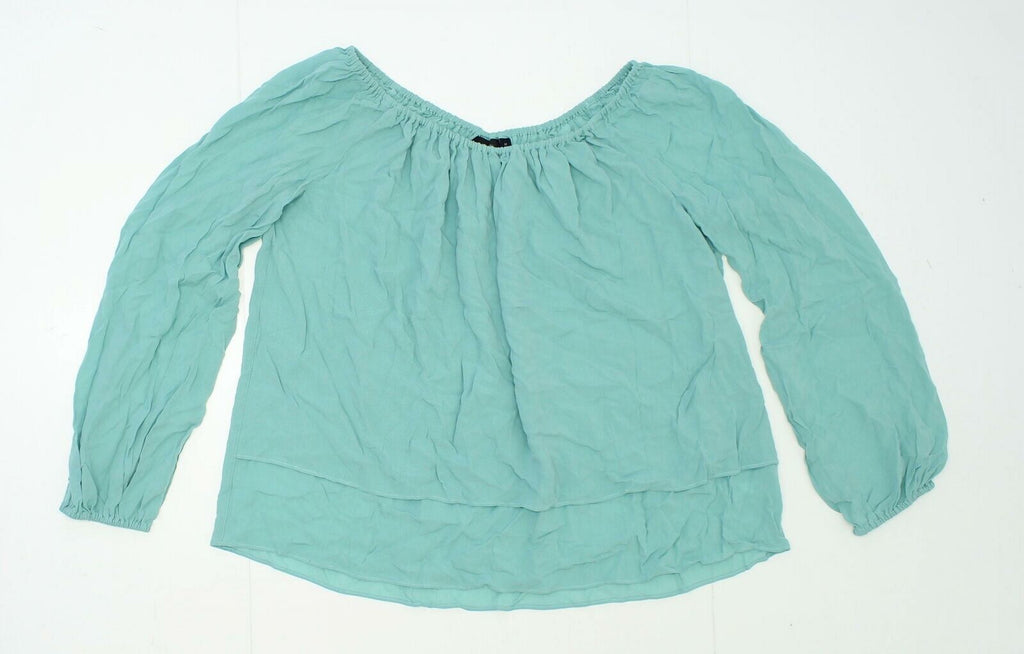Flowy fit peasant blouse can be worn on or off the shoulder.