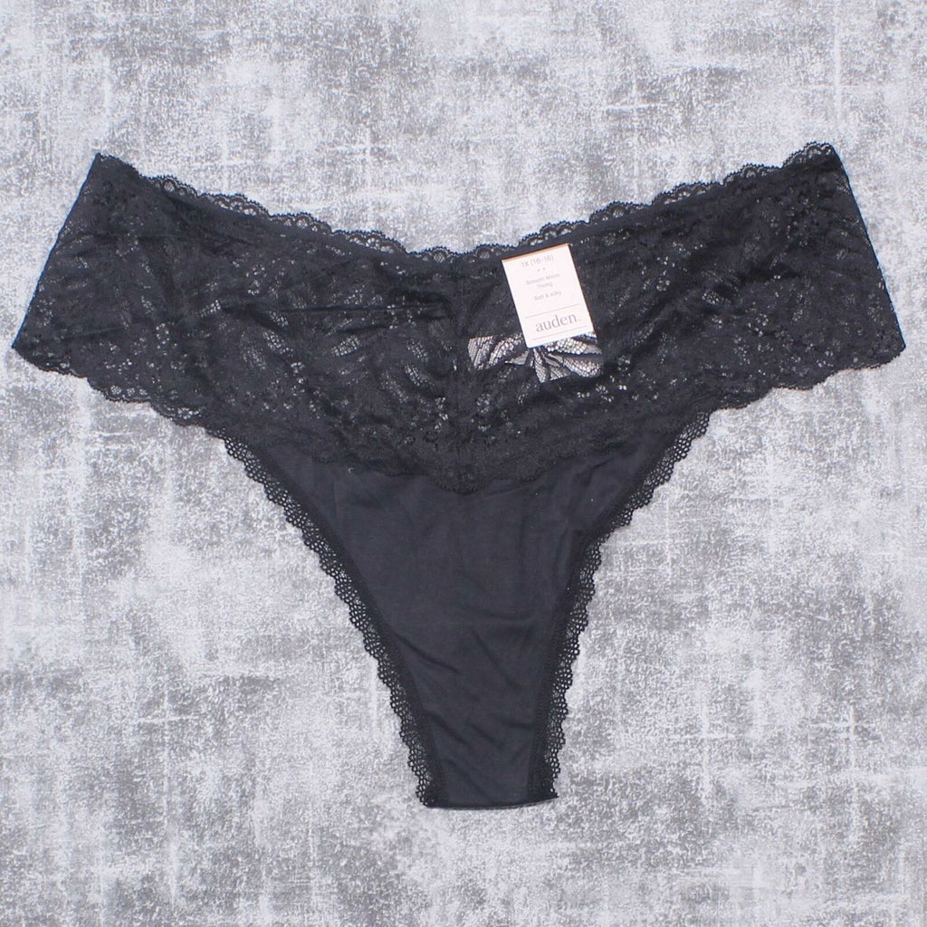 Designed with elegant allure, the Micro Thong with Lace Waistband from Auden makes a lovely addition to your intimates collection. Boasting a micro design, this underwear lays smoothly beneath your clothes for discreet wear, but you can still enjoy the pretty allure of a wide lace waistband. A light fabric blend is soft against your skin and lets you go about your day uninhibited, further aided by the stretch of added spandex for comfortable movement. Back elastic rounds out the piece for a final touch of mobility, and 100% cotton lining offers the breathability you need to go about your day in comfort and confidence.