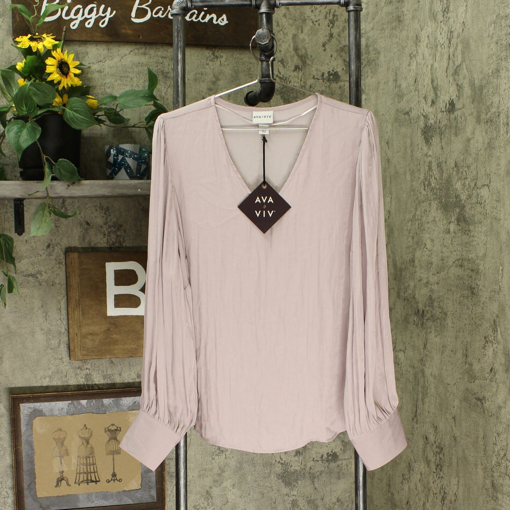 Give your everyday look a bold yet sleek look with this Long-sleeve V-Neck Blouse from Ava & Viv. Perfect for a casual day out or a go-to piece for a night out with friends, this long-sleeve blouse with its classic puff-sleeve design will add the perfect finishing touch to just about any of your looks. The breezy silhouette lends a flattering look that ll move beautifully with your every step and the sleek V-neck style lends it a classic look. Pair it with skinny jeans and sneakers for a fun, casual look, or create a sassy look with a pair of metallic hoops and strappy platform heels.