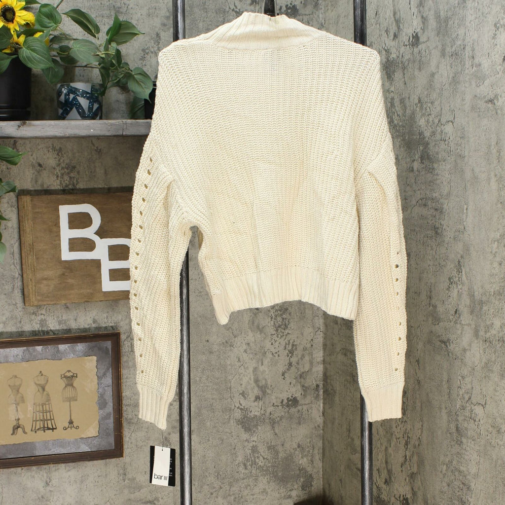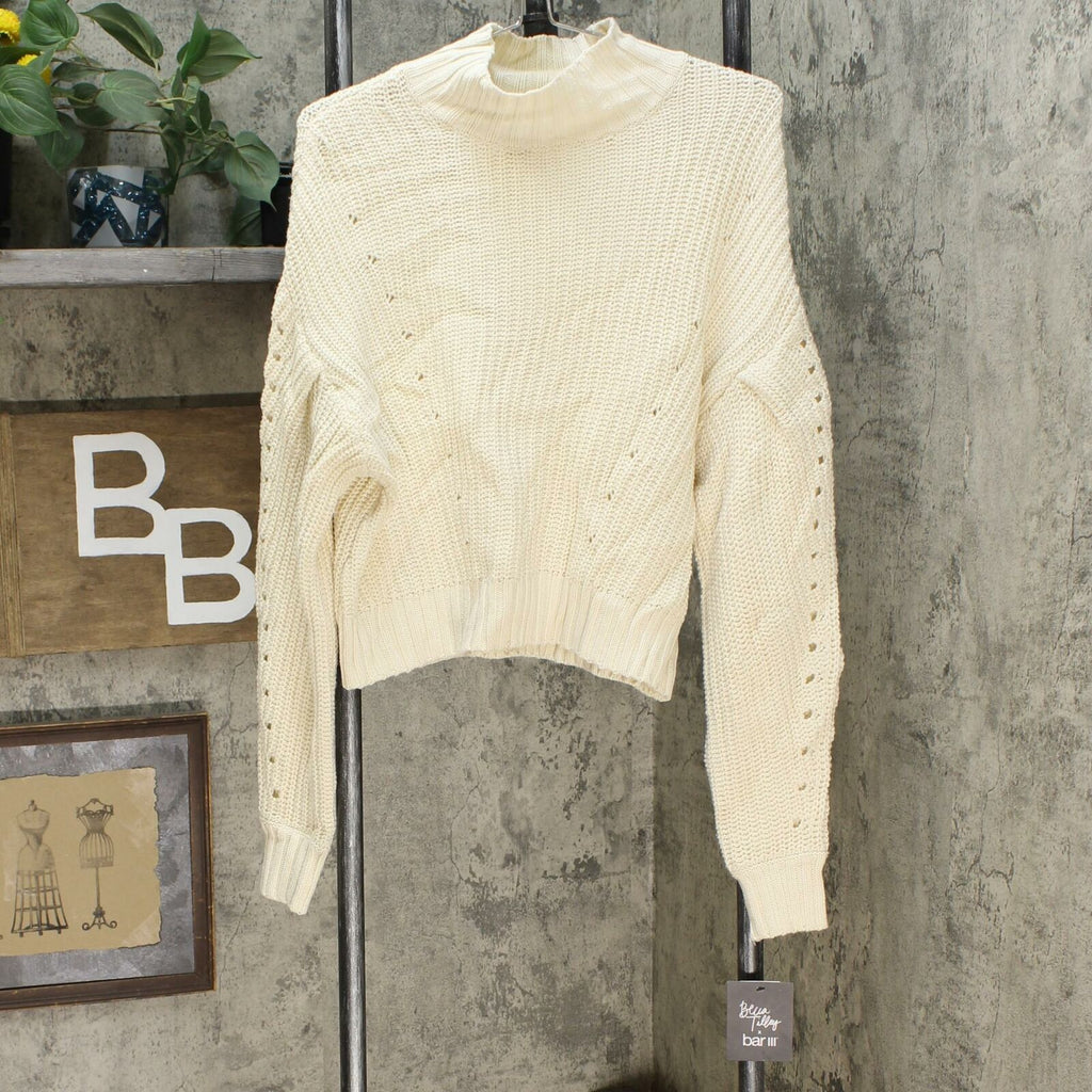 Airy pointelle accents at the front and sleeves of Bar III's ribbed turtleneck sweater bring fresh flair to this chunky style.