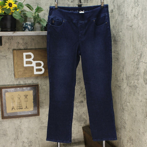 If only your head were on a swivel -- then you could get the full, flattering view of these Flexibelle boot-cut jeans. And, as always, Kim Gravel's keeping it Real,with no back pockets to catch on your cardis or tunics. Simply dress them up (or down) with your favorite accessories of the moment (looking at you, animal-print booties) and bring the to-die-for comfort with you wherever you travel. From Belle by Kim Gravel.