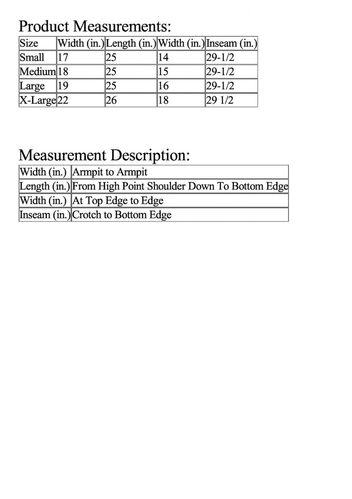 Inseam (in.) Crotch to Bottom Edge