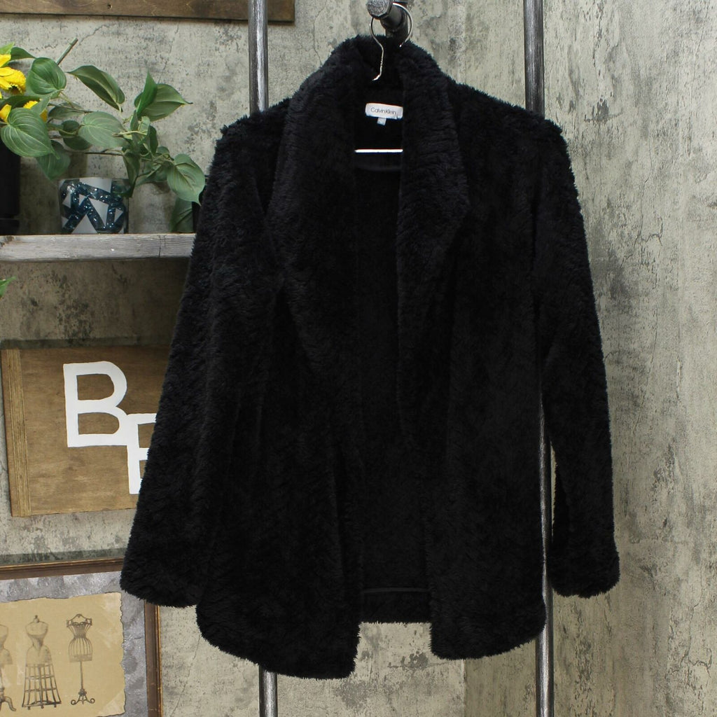 Cozy is key with Calvin Klein's snuggly cardigan stitched in a modern chevron pattern.