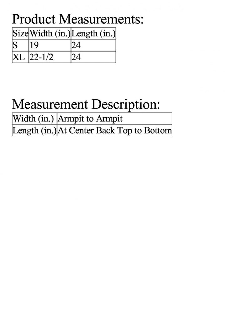 | Length (in.) | At Center Back Top to Bottom |