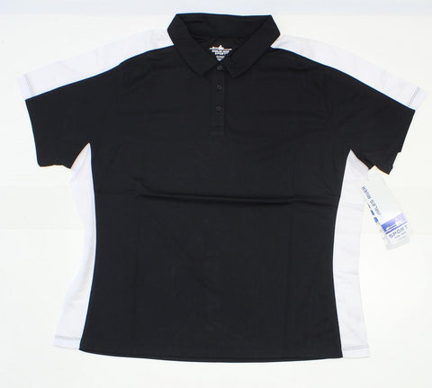100% polyester micropique knit 3.9 oz/yd2 (equiv to 6.39 oz/lyd, 130 gsm) made with TopShield moisture management treatment. Specially designed with a smaller pattern than traditional pique for a smoother fabric that resists snagging. Color blocked design accents at sides and shoulders (front and back) of shirt for a flattering appearance. Self-fabric collar with a 3-button placket and dyed-to-match buttons. Women's features fitted styling.