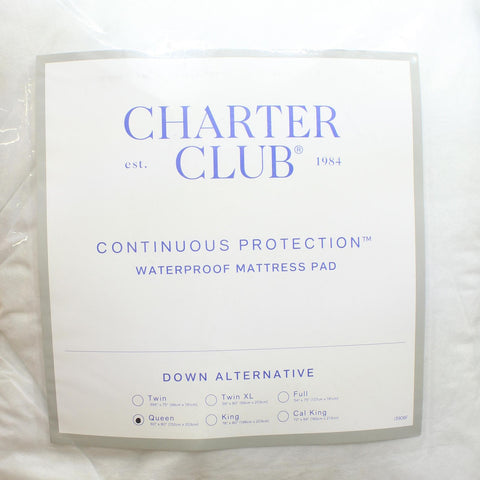 Charter Club Continuous Protection Waterproof Mattress Pad LiquiDry White Queen