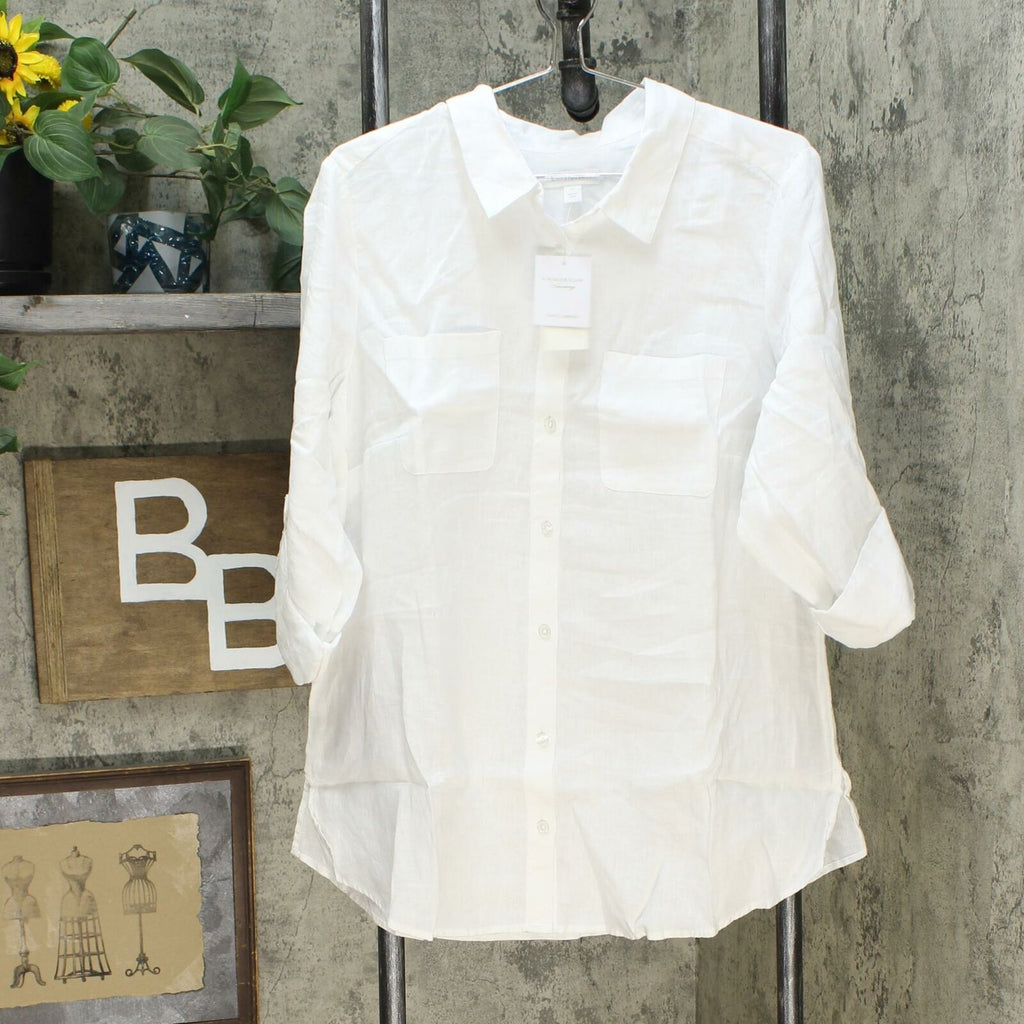 Mix up your casual look in this plus size shirt from Charter Club, styled in breezy linen for added coverage and finished with versatile roll-tab sleeves.