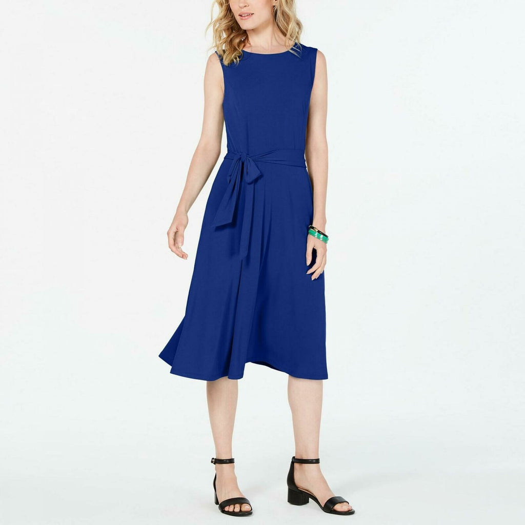 Charter Club presents a classic silhouette with a flattering tie-detail waist with this versatile sleeveless knit midi dress.