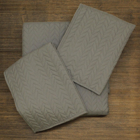 This amazing quilt set features a minimalist, contemporary design with geometric chevron quilting. Color and design coordinated pillow shams are included to complete the look.