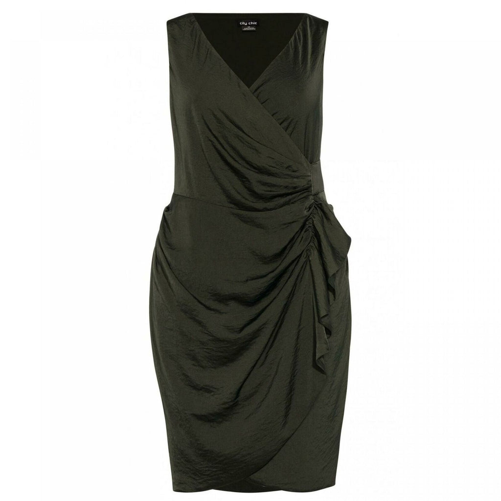 A new shape that's bound to please, City Chic's plus size dress features flattering wrap styling and a sateen finish.