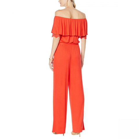 Make a lasting impression wherever you go when wearing this elegant off-the-shoulder jumpsuit. It's a flattering one-and-done, classic look that's perfect for any occasion.