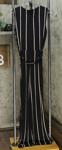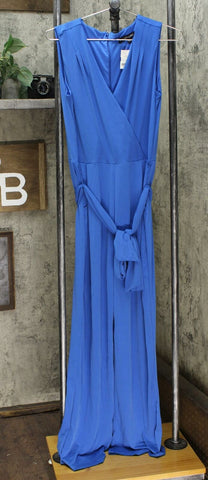 Make a lasting impression wherever you go when wearing this sleeveless belted jumpsuit. It's a flattering one-and-done, classic look that's perfect for any occasion.
