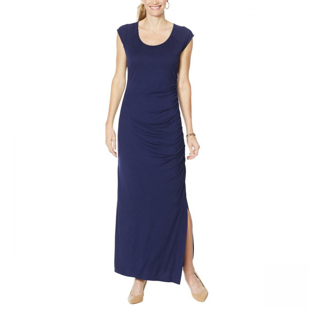 Comfort and style are synonymous at least when it comes to this maxi dress. The alluring side slit and figure-flattering ruching highlight your best assets without sacrificing an ounce of comfort.