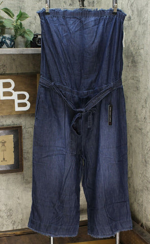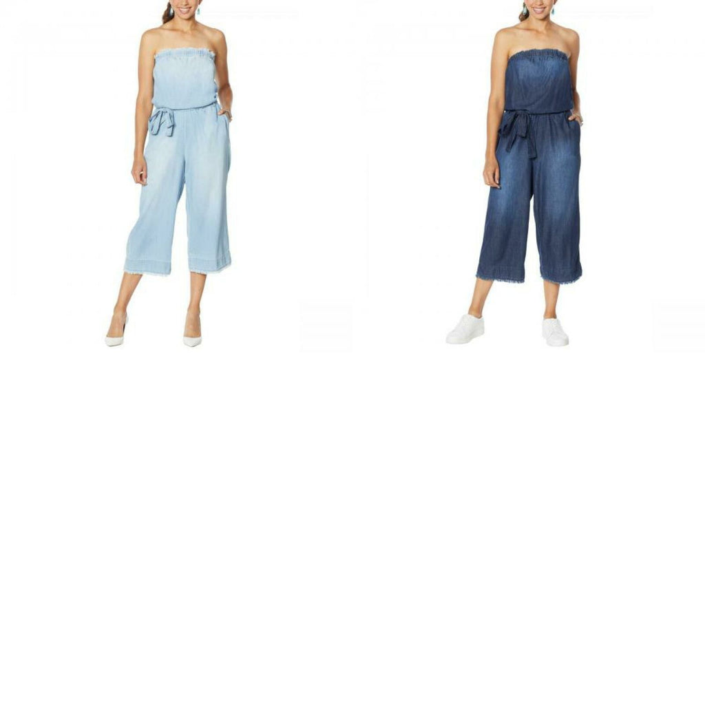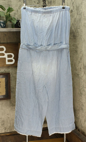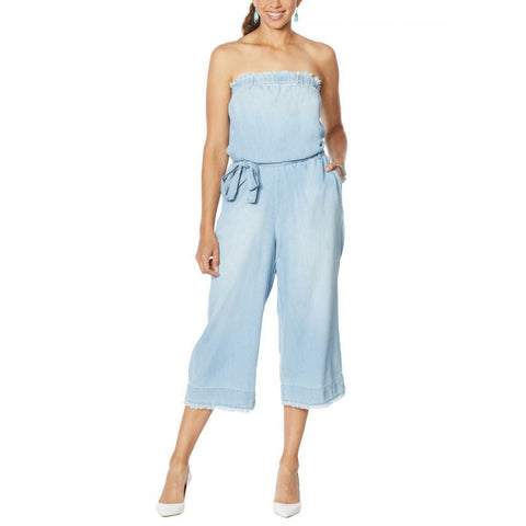 Make a lasting impression wherever you go when wearing this strapless denim jumpsuit. Wear it alone on those warmer days, or add a cute cardigan when the temperature drops.