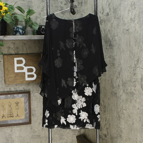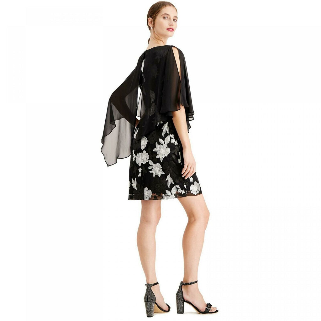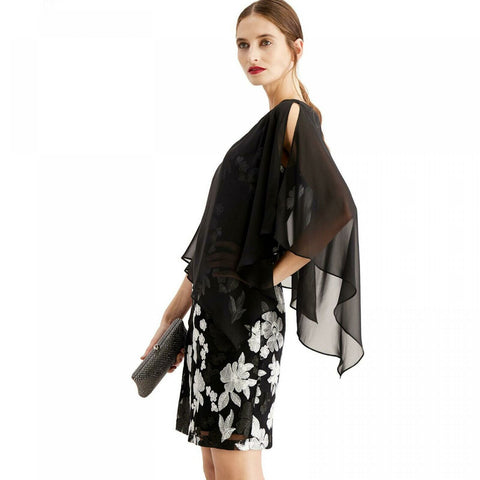 Connected Apparel Women's Petite Embroidered Chiffon Capelet Dress
