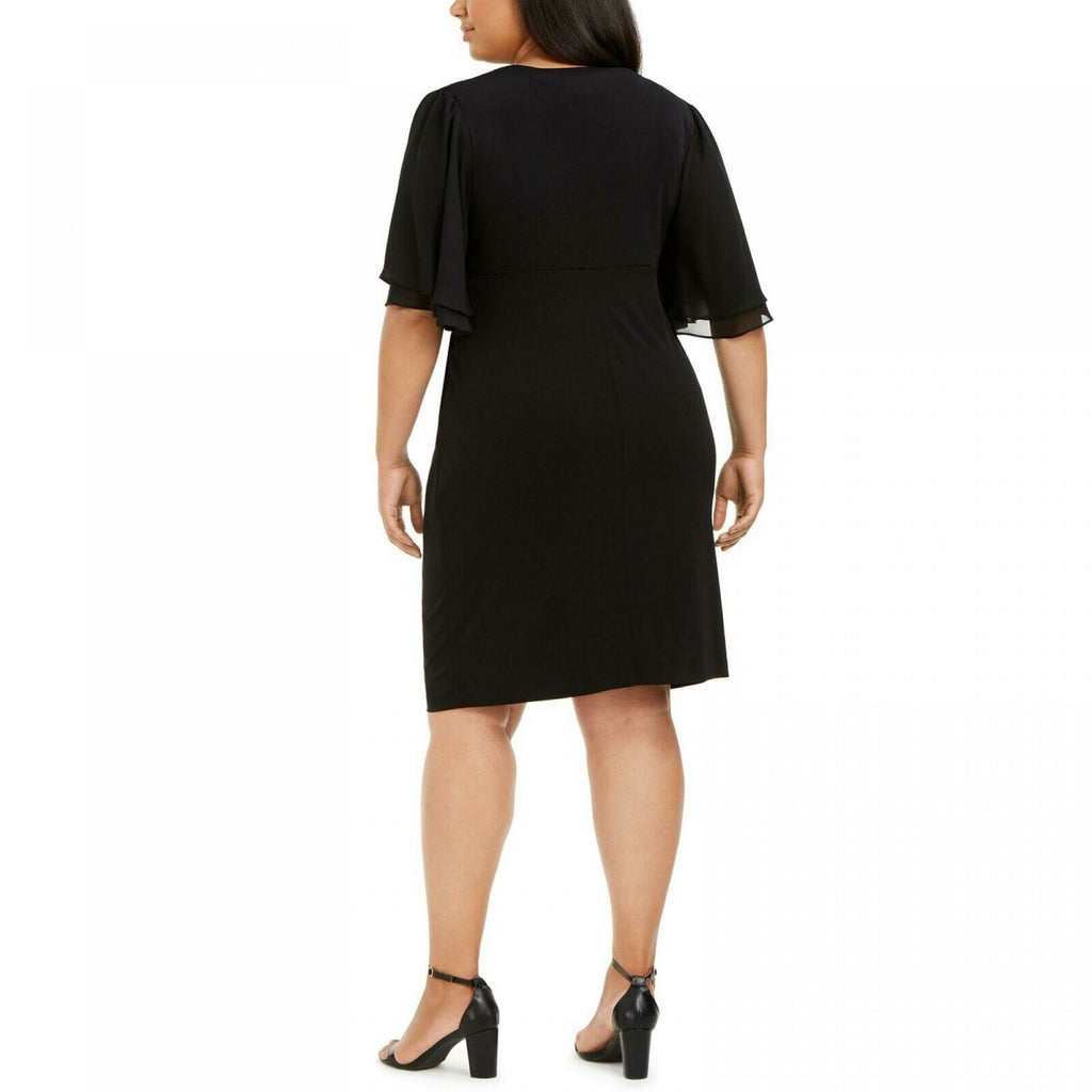 Get your hands on this fiercely flattering sheath dress from Connected, a plus size pick designed with fluttering chiffon sleeves for added coverage.