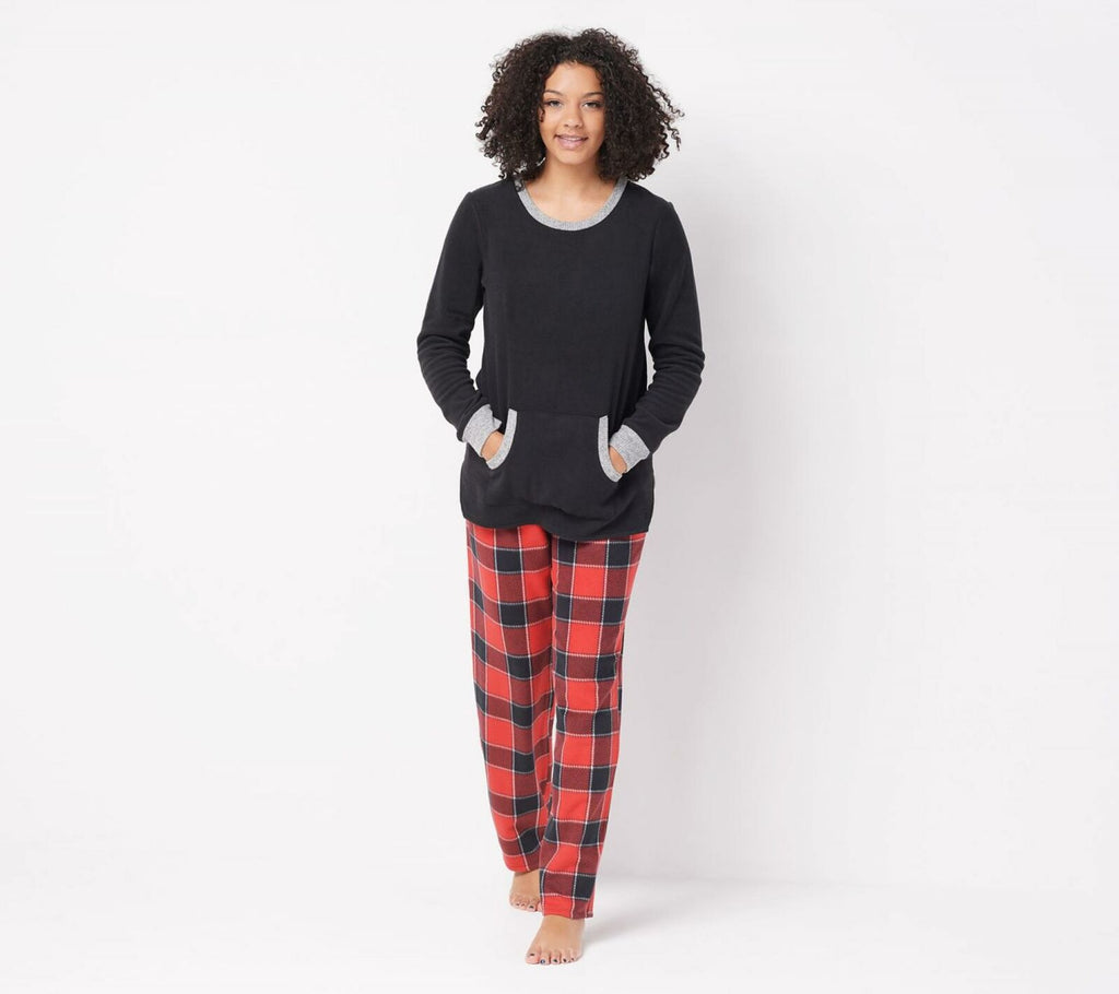 Gear up for nights of fun: board games by firelight or movies with mugs of cocoa. This fleecy pajama set's primed and ready for all your staying-in, holiday merrymaking. From Cuddl Duds.