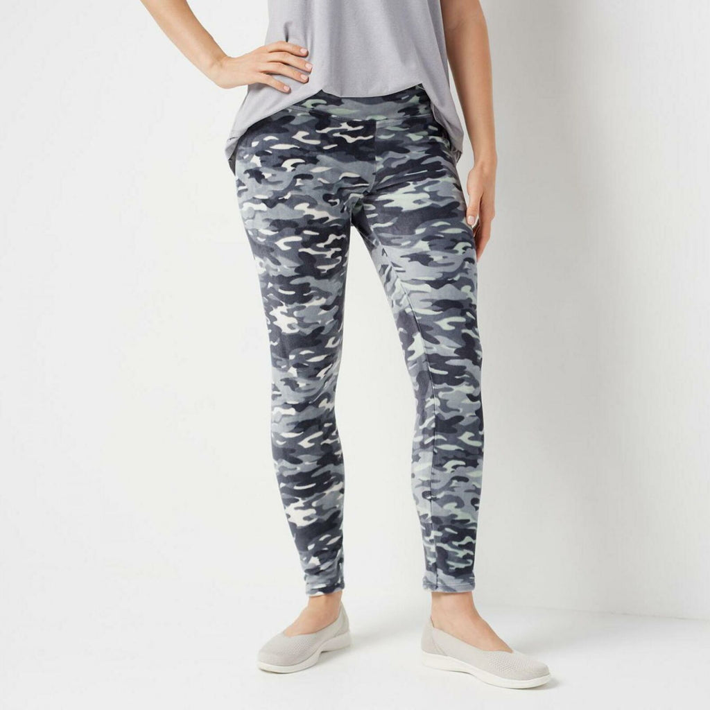 Cuddl Duds Women's Double Plush Velour Leggings Blue Camo Large