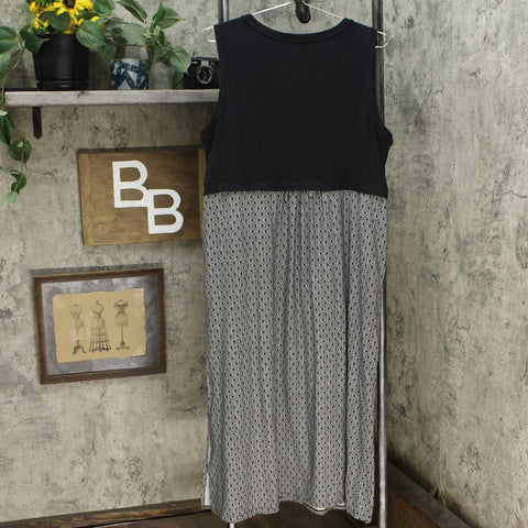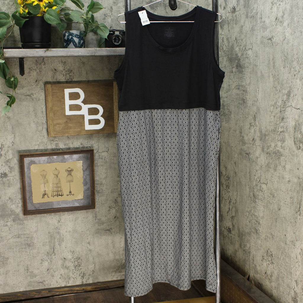 Features: sleeveless, rounded neckline, side seam pockets, side slits