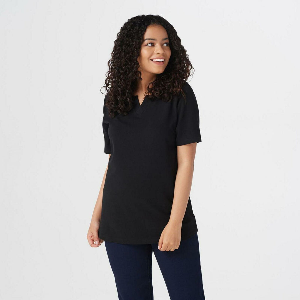 Bring your basics up a notch. This split V-neck knit top is a refreshing change from a ho-hum crew neck!