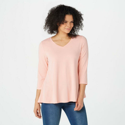 Tell your form-fitting tops to take a break. This breezy basic features a flared fit that's fresh and flattering. From Denim & Co. Fashions.