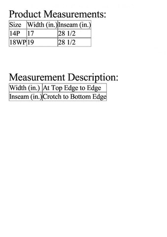 | Size | Width (in.) | Inseam (in.) |