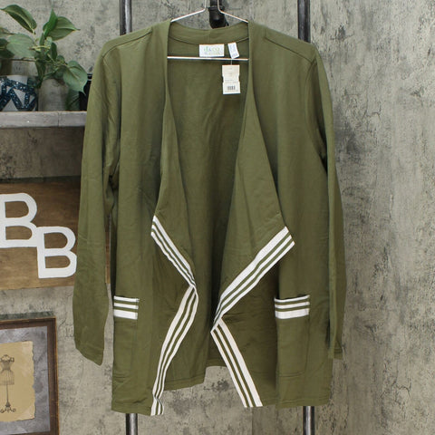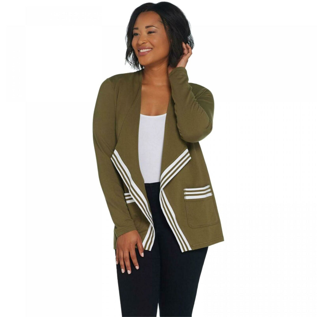 Denim & Co. Women's Plus Size Active Stripe Rib Trim Open Front Knit Jacket