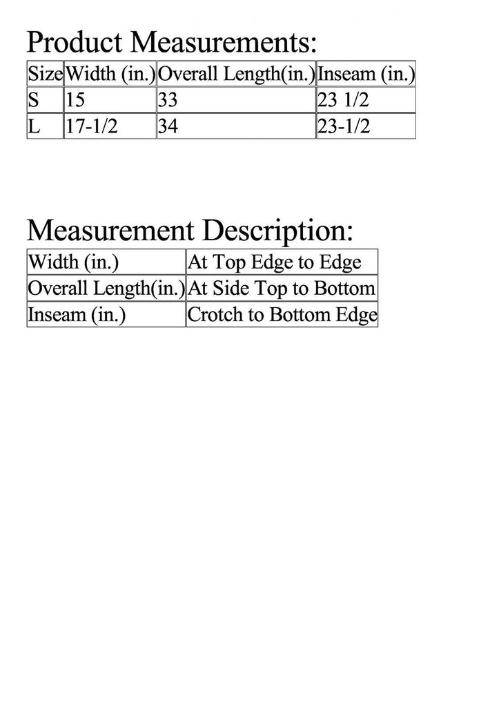| Size | Width (in.) | Overall Length(in.) | Inseam (in.) |