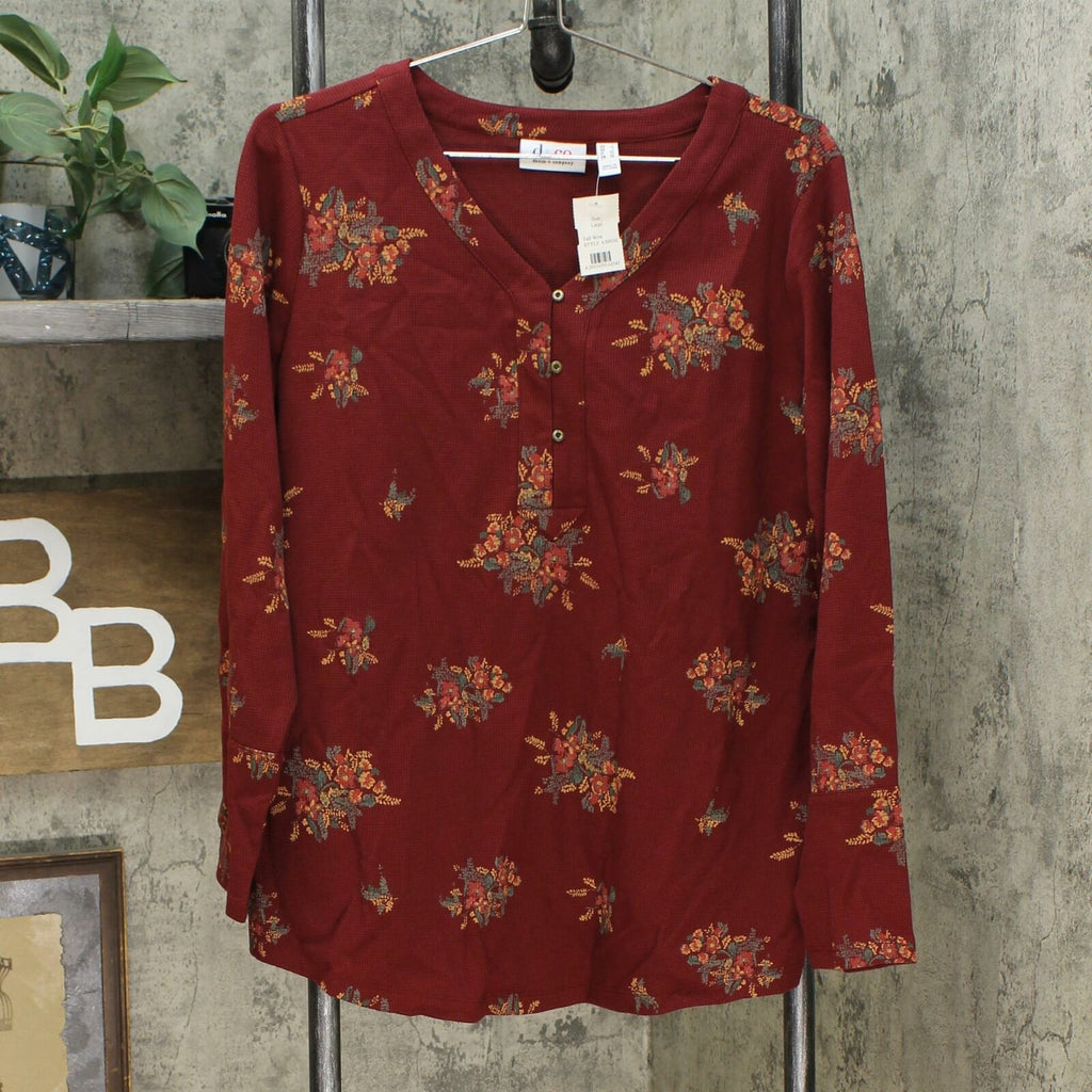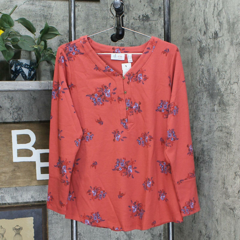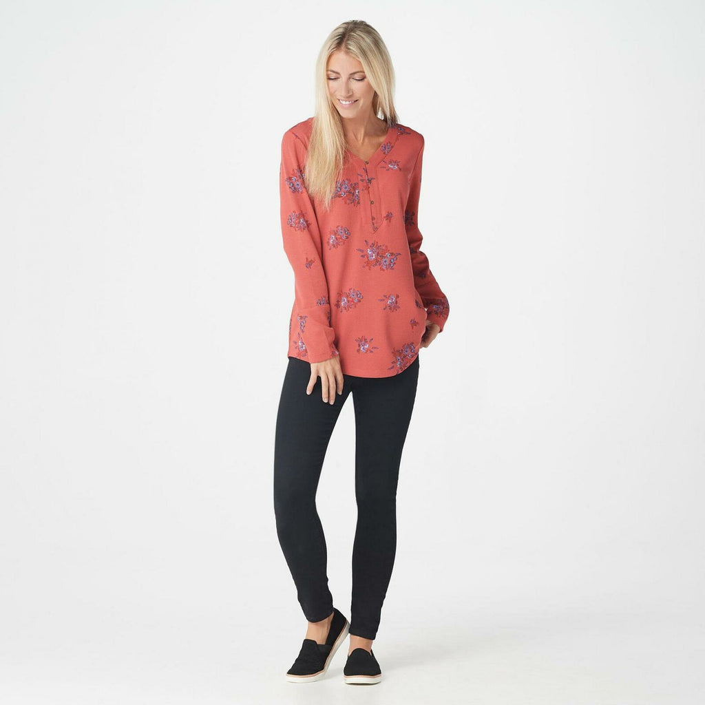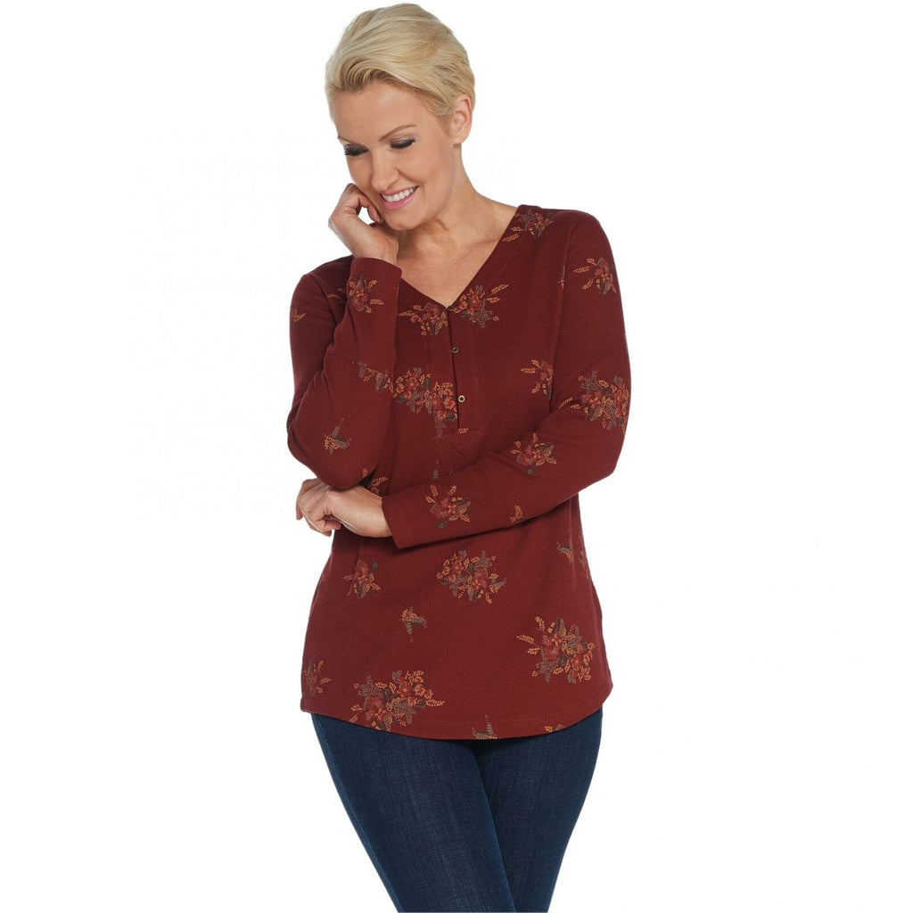 Denim & Co. Women's V-Neck Printed Waffle Knit Henley Shirt