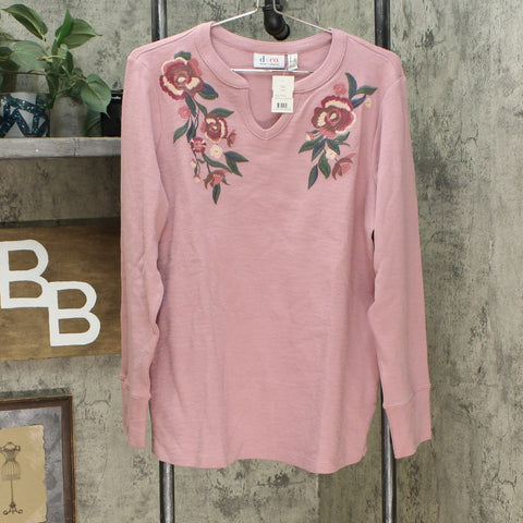 This sweet top is dripping with feminine appeal thanks to embroidery details and a split V-neckline.