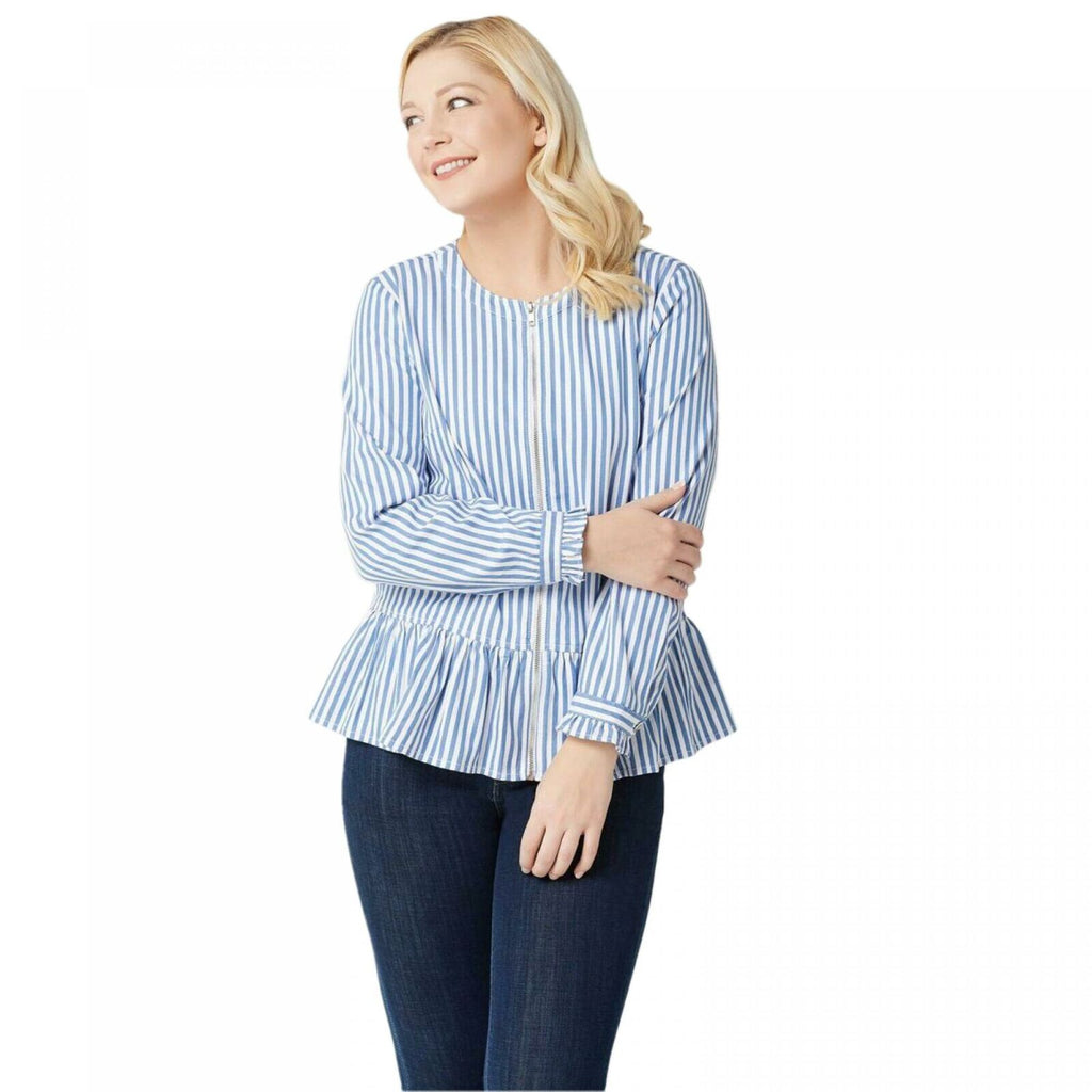 Days off don't get any easier--or cuter--than in this striped ruffle and peplum jacket.