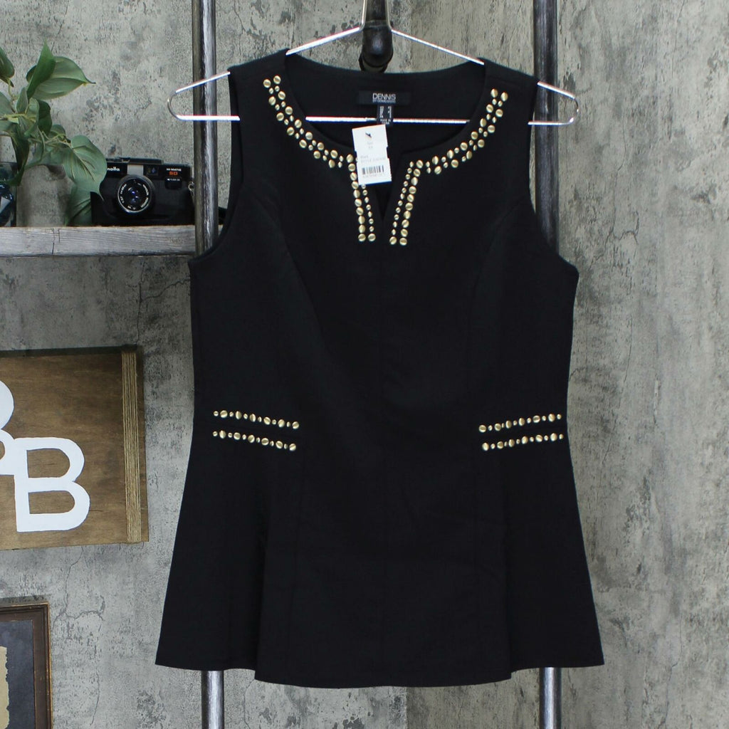 The plans have been made--and now the outfit is, too, with this gracefully studded peplum top in your wardrobe.