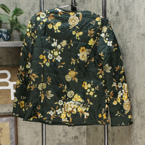 Almost like a work of art, this quilted puffer jacket blooms with an allover print accented by faux-leather trim. From Dennis Basso.