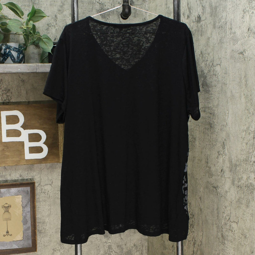 DG2 by Diane Gilman Burnout Printed And Embellished Top Black 3X