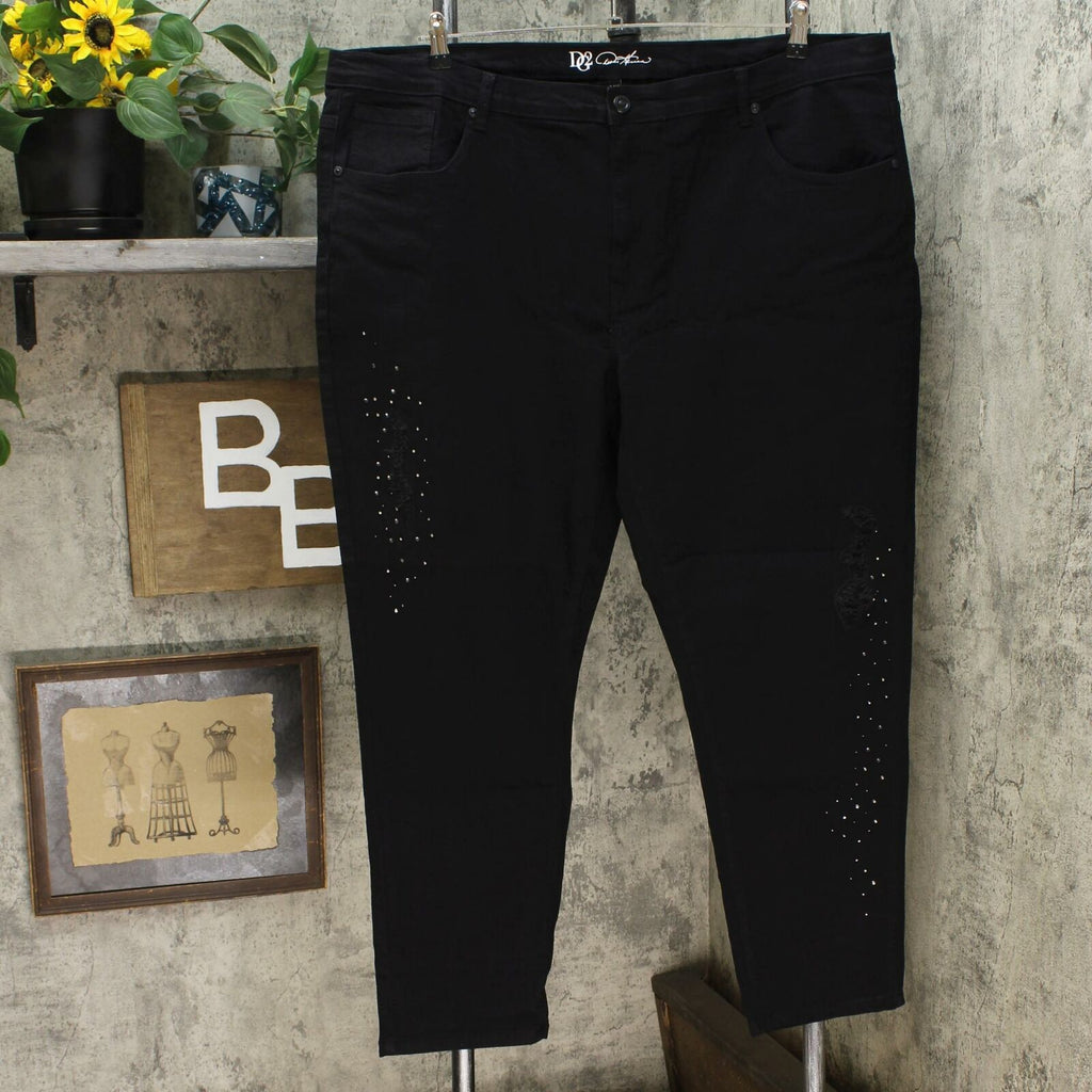 DG2 by Diane Gilman Embellished Distressed Anniversary Jeans Black Plus 24W