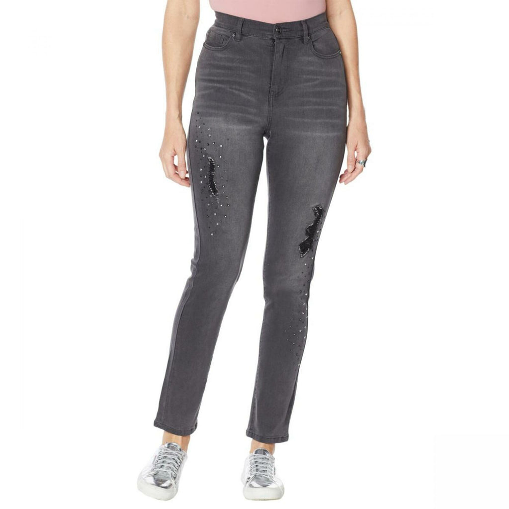 DG2 by Diane Gilman Embellished Distressed Anniversary Jeans Gray Petite 18W