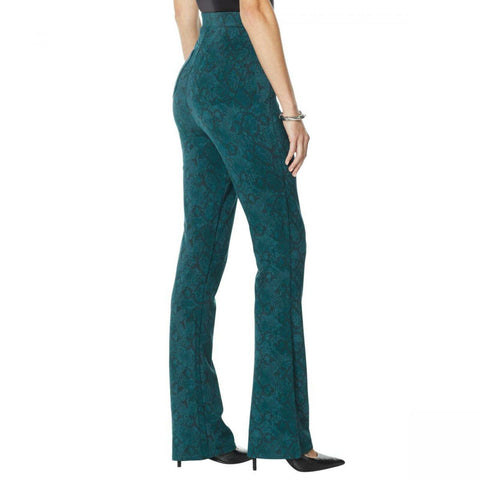 DG2 by Diane Gilman Pull On Stretch Ponte Boot Cut Pants Green Snake XS