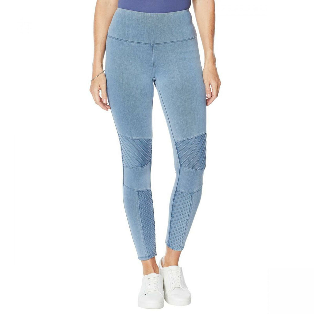 DG2 by Diane Gilman Slim Sleek Knit Denim Moto Jeggings Chambray Large