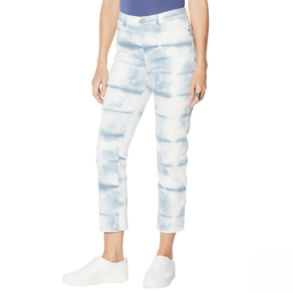 Tie dye, a perennial favorite, reflects an attitude that's just right for this cropped jean featuring a released hem to complete the laid-back look.