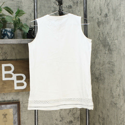 A crochet sweep adds texture and interest to a tank that's easy to dress up for a fresh summer ensemble.