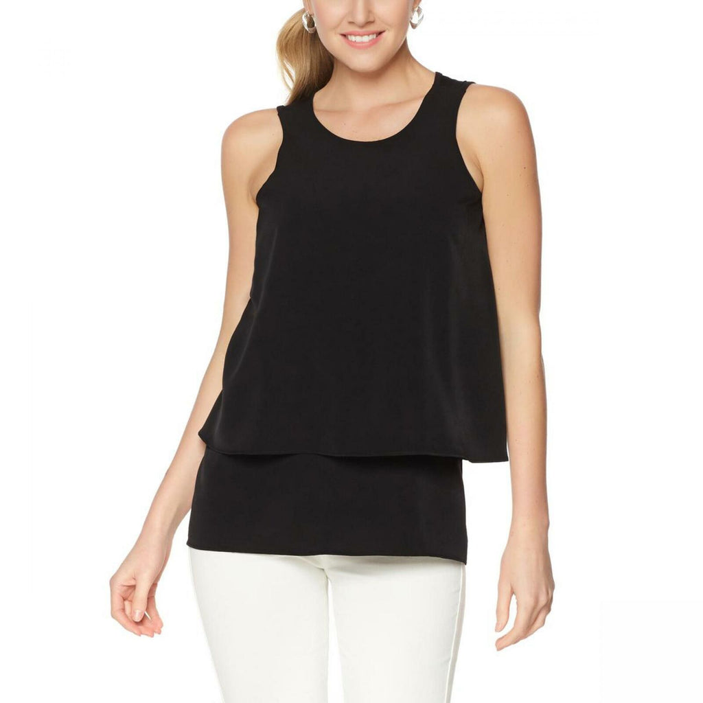 A dressy tank takes you from season to season. Worn alone or layered under a jacket, this mixed-media top features soft knit in back and two layers of crepe de chine in front. The perfect piece for now and later, day or night.