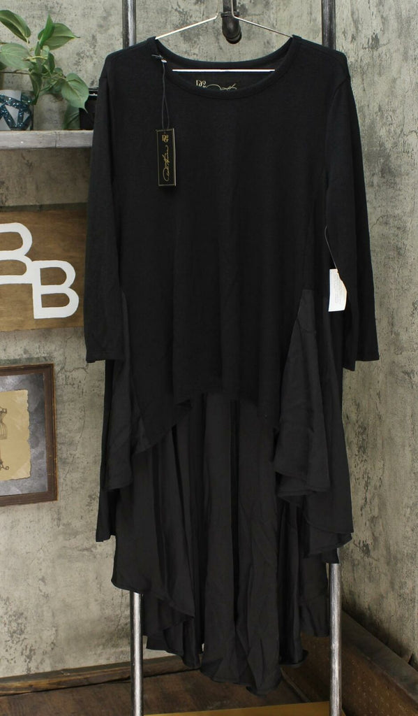 Make a dramatic entrance or exit in this trend-setting top. With a long, pleated back reminiscent of a bustle or steampunk skirt, it's not something you see every day. Get ready to turn heads!