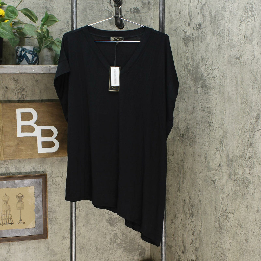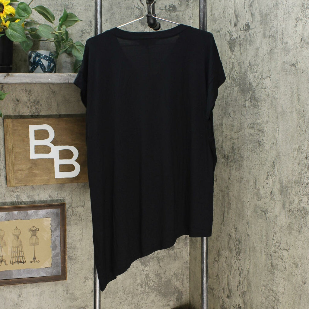 Simply asymmetrical, this versatile tee has a sharp vee neckline and sleek cap sleeves, making it easy to layer under a short jacket as seasons change.