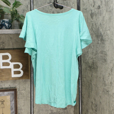 Your warm-weather uniform is here. A cool, cotton-blend knit and short flutter sleeves make this tee a perfect match for all your spring and summer bottoms.