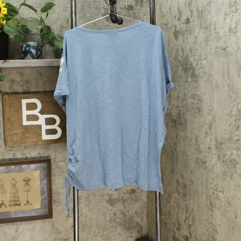 Tie dye has shed its hippie image and is making a play for your everyday wardrobe. The offset, tie dye design and adjustable drawstring detail give this cotton-blend tee a chic, summery feel.